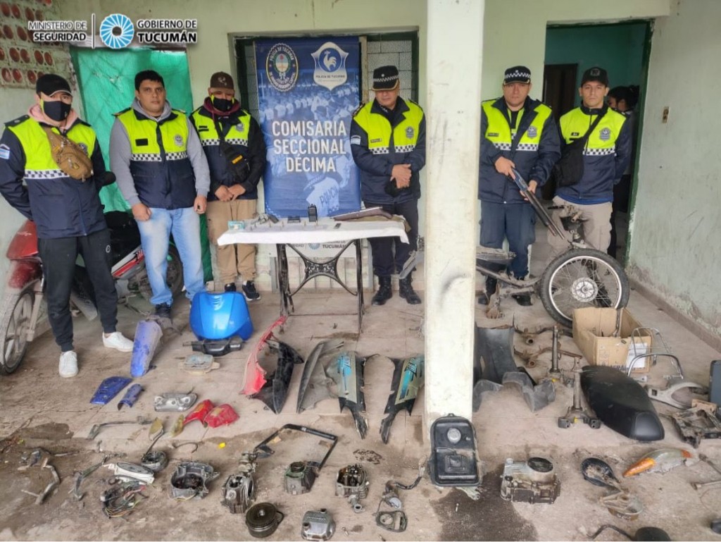 Cuando el personal llegó a efectuar los procedimientos, en el interior de uno de los inmuebles encontró e incautó 10 cartuchos, un rifle, un revólver, un inhibidor de alarmas y gran cantidad de motopartes. Los elementos fueron puestos a disposición de la Unidad Fiscal Criminal y de la Fiscalía de Robos y Hurtos de la ll° nominación.