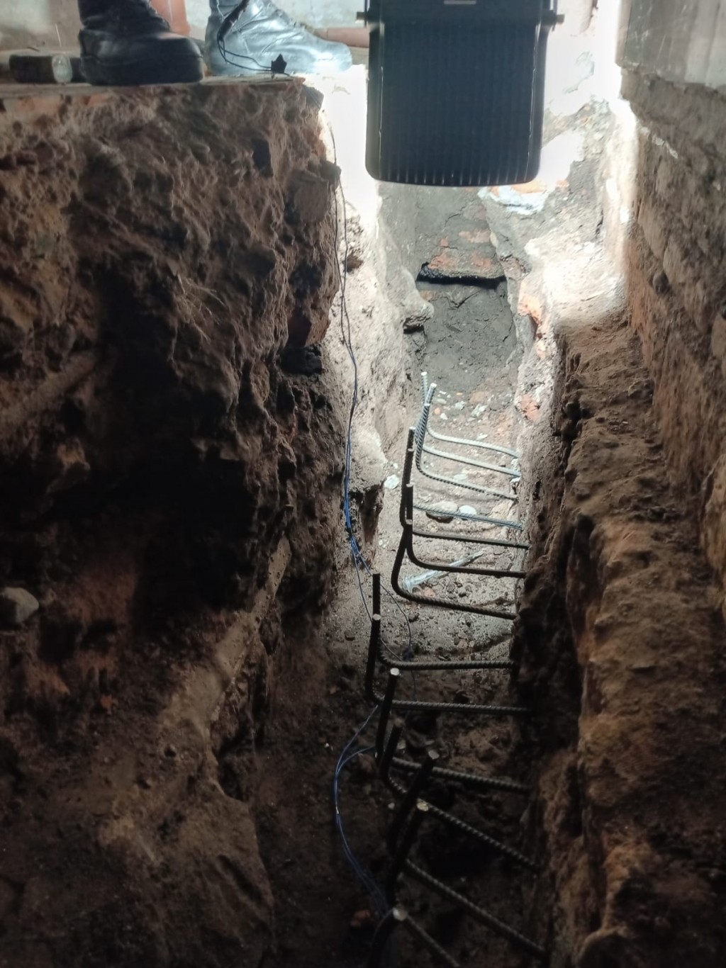 De acuerdo a las fuentes consultadas, el hallazgo se produjo hacia el lado izquierdo de un consultorio, donde se puede observar en el interior de la habitación que está siendo refaccionada, un pasillo de un metro y medio aproximadamente de ancho por siete metros de largo, en donde se está llevando a cabo una excavación para conexiones varias.