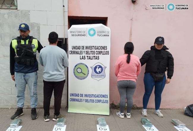 Efectivos de la Unidad de Investigaciones Criminales y Delitos Complejos Las Talitas detectaron que el chofer y la pasajera de un taxi mantenían una actitud sospechosa. En la requisa hallaron dos mochilas con ladrillos de marihuana, ambas personas fuero aprehendidas, una de ellas es de nacionalidad extranjera.