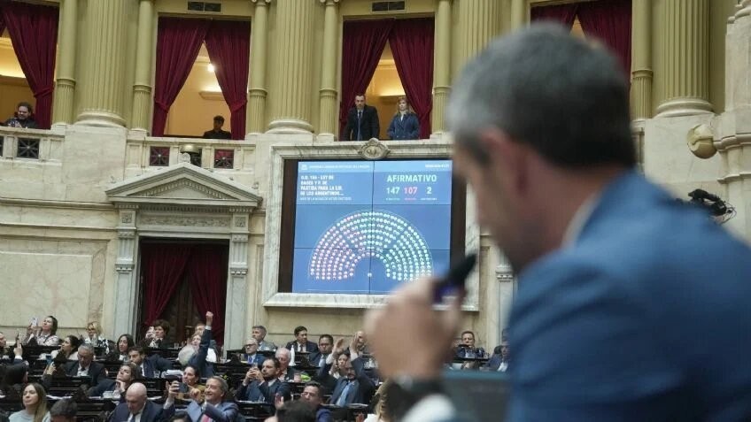 Martín Menem mira para arriba, sonríe, aplaude y cierra el puño, acaba de sancionar la Ley Bases. La Cámara de Diputados de la Nación le acaba de dar a Javier Milei su primera ley después de más de seis meses de gestión, con 147 votos afirmativos y 107 negativos. La jornada quedó sellada por traiciones internas y llamados a último momento para conseguir cada voto.
