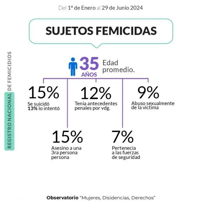 Las estadísticas destacan la relación entre la víctima y el agresor: el 52 % de los femicidios fueron cometidos por parejas o ex parejas. En cuanto a la modalidad del asesinato, el 39 % de las mujeres fueron asesinadas con arma blanca.