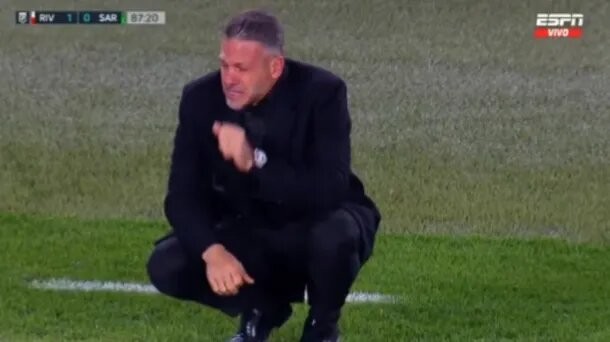 Franco Mastantuono abrió el marcador sobre el cierre del partido y el DT, que se despidió ante la gente en el Monumental, explotó de felicidad. No pudo contener las lágrimas hasta retirarse del estadio