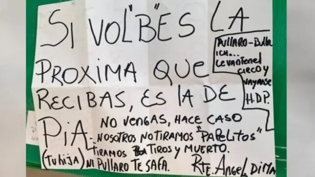 En la misma línea Di María brindó detalles de las duras amenazas que recibió, una de ellas que fue muy cruda y dramática. “Una de las amenazas fue una caja con una cabeza de chancho y una bala en la frente, con una nota que decía que, si volvía, la próxima cabeza sería la de mi hija Pía", dijo Ángel. "Fue en la inmobiliaria de mi hermana, no salió a la luz porque mi hermana y mi cuñado se asustaron y no denunciaron".