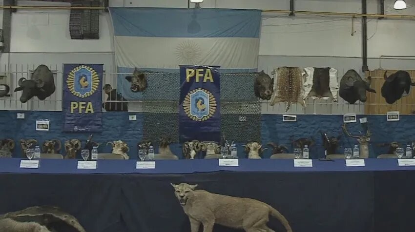 La Policía Federal Argentina (PFA) desbarató una banda que invitaba a extranjeros a cazar en cotos ilegales para matar animales protegidos. Esto se alcanzó luego de múltiples operativos en los que se secuestraron más de 3000 trofeos de caza, armas de fuego y municiones.