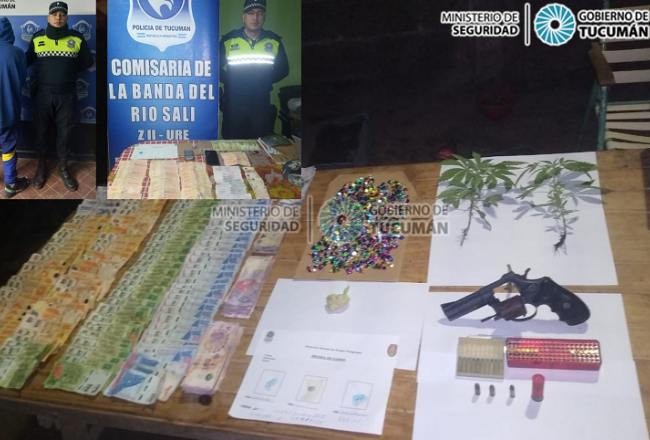 Además de la detención del sospechoso, los efectivos hallaron la suma de 513.950 pesos en efectivo, un arma de fuego tipo revólver calibre 32 sin número de serie y varios cartuchos sin percutar.