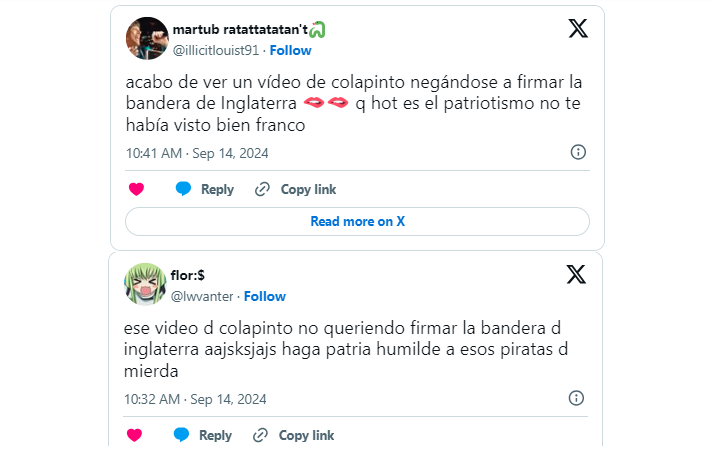 Colapinto se negó a firmar una bandera británica y revolucionó las redes