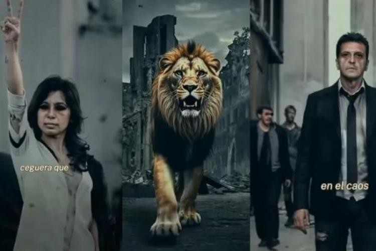 Sobre el final y con un león -el animal que eligió el Presidente para identificarse desde su incursión en la arena política- que camina sobre ruinas expresa que la enfermedad se debilita y que “ahora ya no contagia”. “Se ha vuelto vulnerable y en medio de la esperanza una esperanza ha surgido”, concluye y aparece un león.