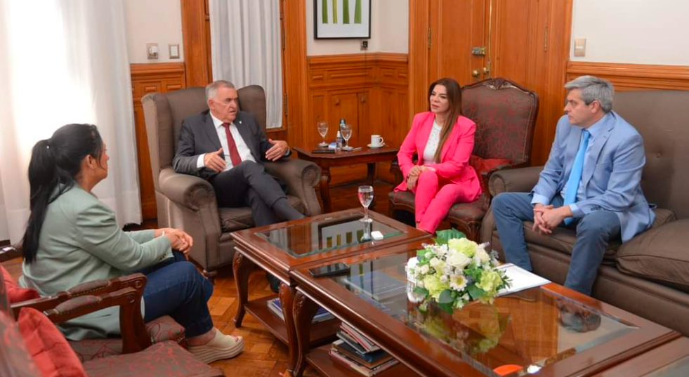 El gobernador, Osvaldo Jaldo, recibió en su despacho de Casa de Gobierno a los diputados nacionales por Tucumán, Agustín Fernández, Elia Fernández y Gladys Medina, para dialogar acerca de la aprobación de la Boleta Única de Papel (BUP) para la emisión del sufragio.