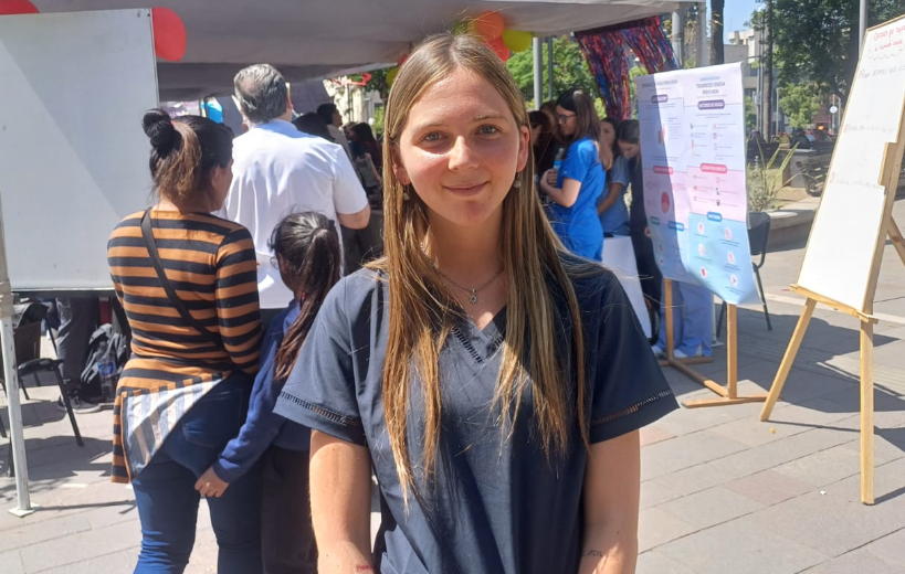 “Estamos haciendo una gran movida para promover la salud”, afirmó Guadalupe Amado, estudiante de cuarto año de Medicina y participante de los stands. “Hoy vinimos acá a la Plaza Independencia con los chicos de quinto año también. Estamos dedicados a la prevención y promoción de la salud en diferentes temáticas, tanto para adultos como para pediatría.”