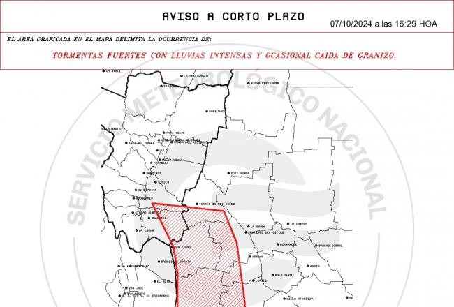 En ese sentido, el SMN detalla que el fenómeno podría golpear a los departamentos de Simoca y Graneros en nuestra provincia; en tanto que las localidades santiagueñas mencionadas son Hoya, Guasayan, Loreto, Rio Hondo, Capital, y Silipica. La Paz es la única localidad catamarqueña que figura en el mapa de riesgo.