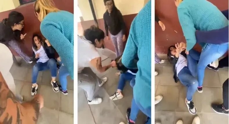 La brutal agresión fue grabada con un teléfono celular por una de las violentas mujeres, agresiones que incluyeron golpes de puño, patadas, tiradas de pelo y hasta la destrucción del teléfono celular de la docente del sexto año de la materia Inglés.