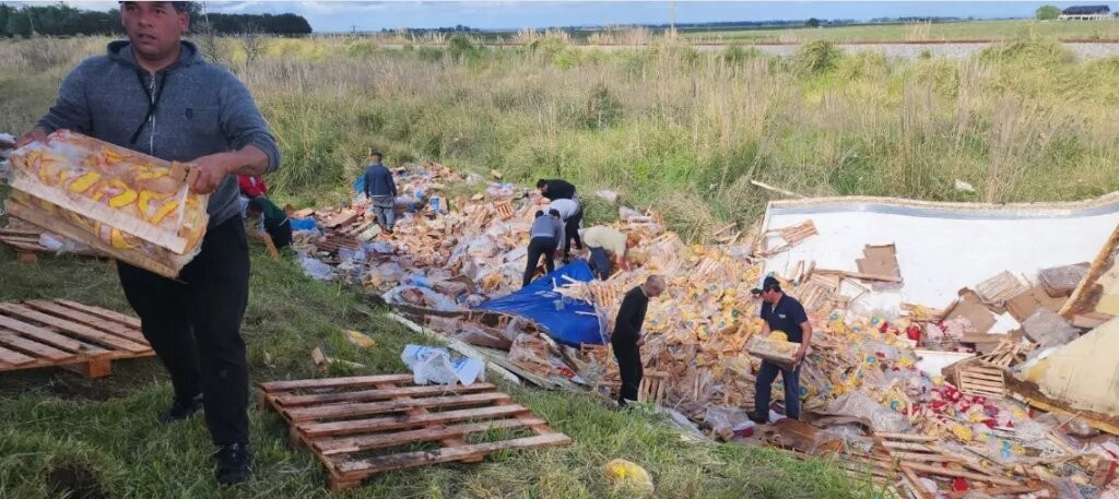 “Me enteré por un chusma de Vidal que había volcado un camión con toda la mercadería que llevaba. Lo ayudamos a cargar al chofer y el muchacho nos dijo que nos podemos llevar algunas cositas”, contó un hombre en diálogo con “Buenas Mañanas”, el programa de Canal 8.