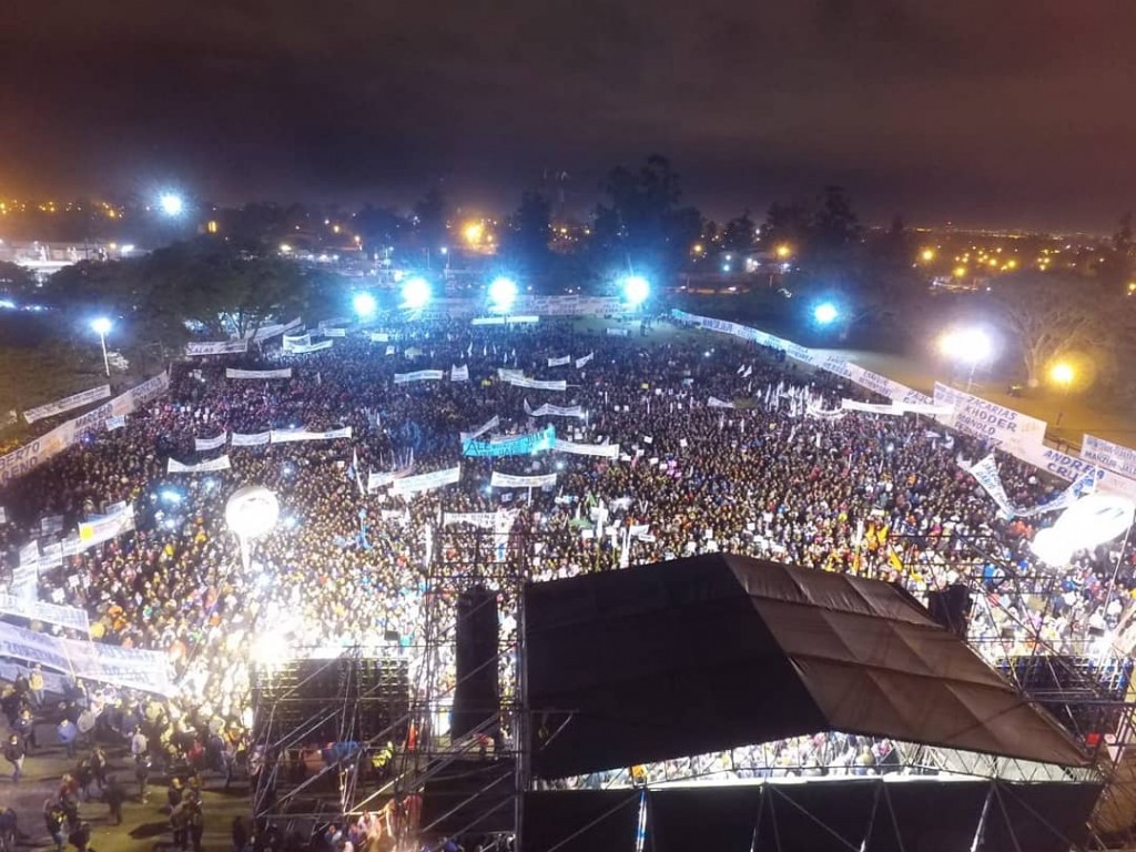 El gobernador Juan Manzur, junto al vicegobernador Osvaldo Jaldo, el ministro del interior Miguel Acevedo, el intendente de Banda del Río, Darío Monteros, la diputada nacional Gladys Medina, los legisladores, Daniel Herrera, Enrique Béthencourt, Graciela Gutiérrez, José Gutiérrez (h) , Zacarías Koder, el concejal Gonzalo Monteros y candidato a legislador, los intendentes Marcelo Herrera, Roberto Moreno, delegados comunales, concejales y candidatos de toda la sección electoral este, participaron del multimillonario acto en los predios del ingenio San Juan, que convocó a más de 35000 personas.