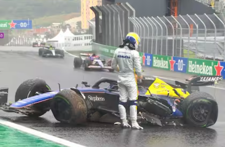Un fin de semana complicado llegó a su fin para Franco Colapinto en el Gran Premio de Brasil, donde el joven piloto argentino se vio obligado a abandonar la carrera tras un accidente en la vuelta 32. La situación se tornó crítica cuando el bonaerense perdió el control de su Williams y sufrió un fuerte choque que generó la bandera roja en el circuito que se tornó muy complicado por las intensas lluvias.