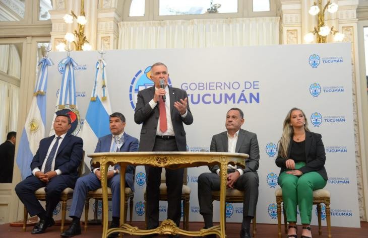 Junto al Gobernador estaba el vicegobernador, Miguel Acevedo, los funcionarios del gabinete provincial acompañaron los ministros: Darío Monteros (Interior), Regino Amado (Gobierno y Justicia) y la directora del Registro Civil, Carolina Bidegorry.