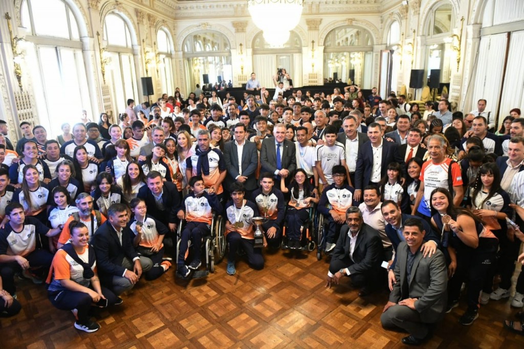 Jaldo agradeció la colaboración de padres y entrenadores y expresó: “Al margen de las medallas y de las copas, la participación ha sido lo más importante. Por eso, en cada municipio, comuna, barrio y club a la que ustedes pertenecen, cuenten las vivencias que han tenido todos estos días. Tienen que transmitir a los otros chicos sus vivencias. Cuando uno se pone metas y objetivos, en todos los órdenes de la vida, pero fundamentalmente en lo deportivo, con esfuerzo, sacrificio y constancia, se puede conseguir logros. Pero también nos tienen que ayudar a contagiar a muchos otros niños y jóvenes que los queremos acá, también en el Salón Blanco, junto con ustedes, participando y practicando diferentes disciplinas”.