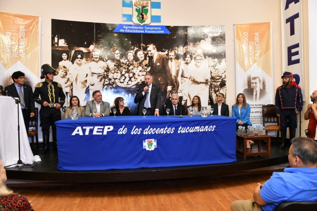 El gobernador, Osvaldo Jaldo, participó esta mañana del acto por el 75° aniversario de la Agremiación Tucumana de Educadores Provinciales (ATEP), en la sede de San Lorenzo 434 de la capital tucumana. La institución fue creada para la defensa de los derechos de los educadores.