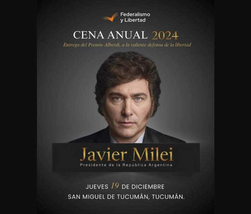 Javier Milei estará en Tucumán el próximo 19 de diciembre, cuando llegue para participar de la Cena Anual de la Fundación Federalismo y Libertad.