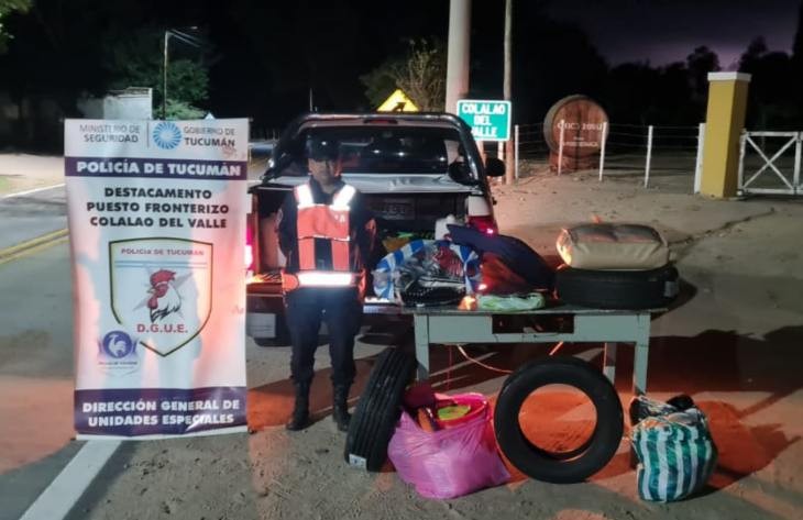 Fue aproximadamente a las 9 de la noche, que los efectivos instalados en el Destacamento Fronterizo Colalao del Valle detuvieron la marcha de una camioneta Amarok, que provenía de la provincia de Salta y se dirigía hacia la vecina Catamarca, para efectuarle una inspección de rigor en la que encontraron varias cubiertas de auto y moto, tres bultos con productos de bazar y cuatro con elementos de diversa naturaleza que eran trasladados sin ningún tipo de aval aduanero.