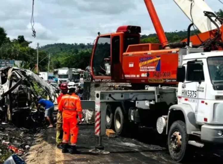 El siniestro sucedió en la BR-116, conocida por ser una de las carreteras más peligrosas del país. Un autobús chocó contra un camión y luego fueron impactados por un auto, que provocó un incendio.