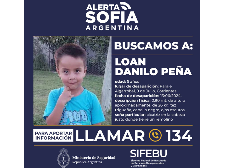 A más de siete meses de la desaparición de Loan Danilo Peña, el abogado de la familia confía en que pronto habrá una resolución. Por el caso, hay siete imputados: Carlos Pérez, acusado de sustracción de menores y actualmente procesado con prisión preventiva, junto a María Victoria Caillava, Bernardino Antonio Benítez, Daniel Oscar Ramírez, Mónica del Carmen Millapi, Laudelina Peña y Walter Maciel. En palabras del letrado, están “a medio minuto de una condena”.