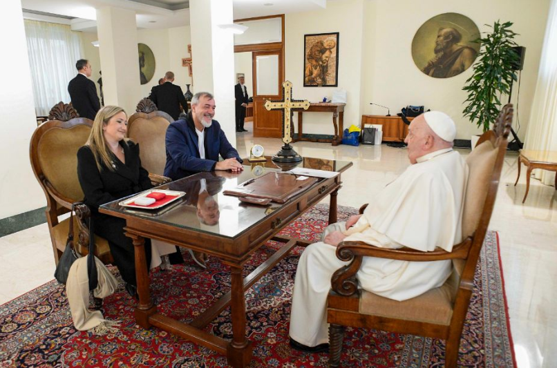 El Sumo Pontífice, en una audiencia privada, dialogó con el secretario general de ATE y a la secretaria adjunta del gremio, Mercedes Cabezas. Aguiar dijo que le solicitó que “evalúe adelantar su viaje a la Argentina, que no lo demore más porque hay un pueblo sufriente deseoso de su llegada”.