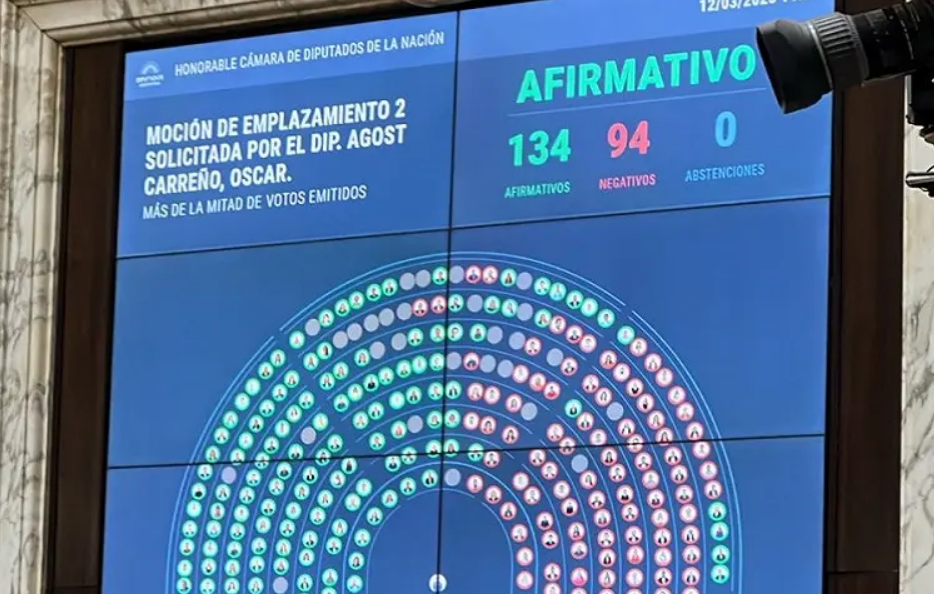 Los 134 votos a favor fueron 95 de Unión por la Patria, 11 de Democracia para Siempre, 8 de Encuentro Federal, 6 de la Coalición Cívica y 5 del Frente de Izquierda.