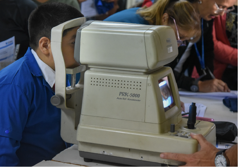 Durante los operativos para completar la ficha médica escolar, oftalmólogos realizan controles de agudeza visual a los estudiantes. Los exámenes comenzaron en la escuela Alfonsina Storni primaria. Quienes lo necesiten, recibirán lentes creados con plástico recolectado por el Municipio en sus Eco Puntos.