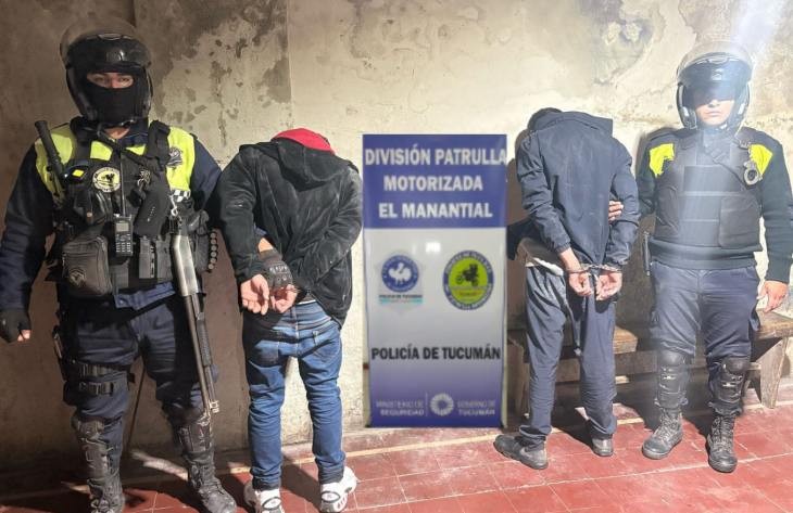 Efectivos de la División Patrulla Motorizada El Manantial montaron un operativo, mediante el cual, atraparon a dos delincuentes que intentaban darse a la fuga, este sábado.