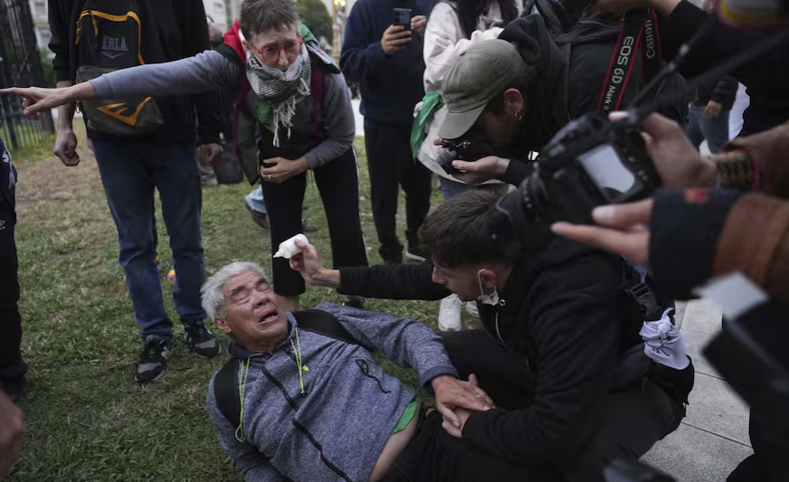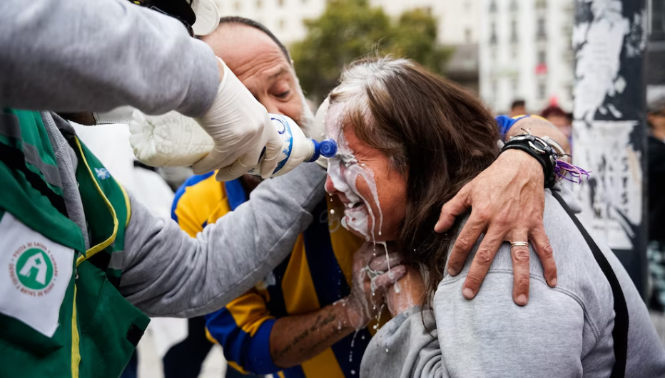 Minutos después, sin embargo, la situación volvió a tensarse. Sobre la vereda de uno de los anexos del Congreso, por calle Rivadavia, numerosas personas debieron ser asistidas, afectadas por los gases arrojados, nuevamente, para desarticular la marcha. (P12/Infobae).