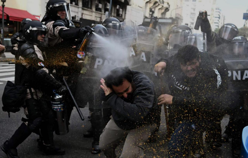 Este miércoles nuevamente las fuerzas de seguridad implementaron el protocolo de Patricia Bullrich, golpearon y gasearon a manifestantes en las inmediaciones del Palacio Legislativo.