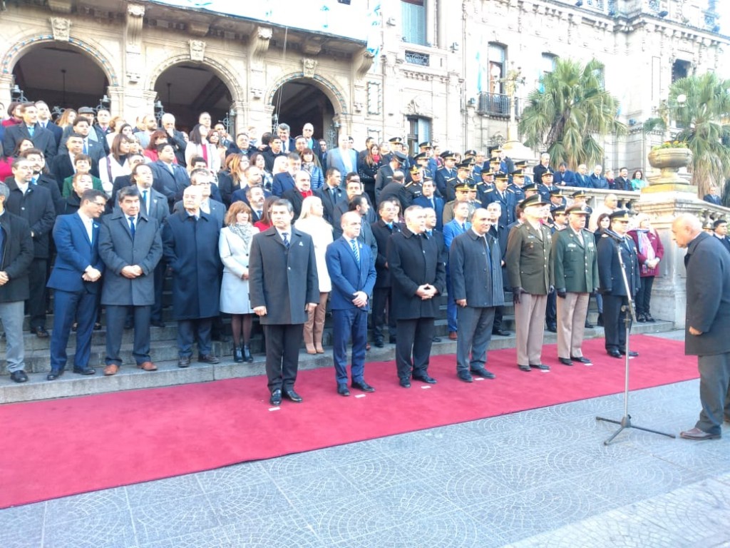 Alumnos de diferentes escuelas de la provincia y cadetes del Instituto de Enseñanza Superior de Policía General José de San Martín, realizaron la promesa y juramento de lealtad a la Bandera Nacional, en el marco de la conmemoración del 20 de junio