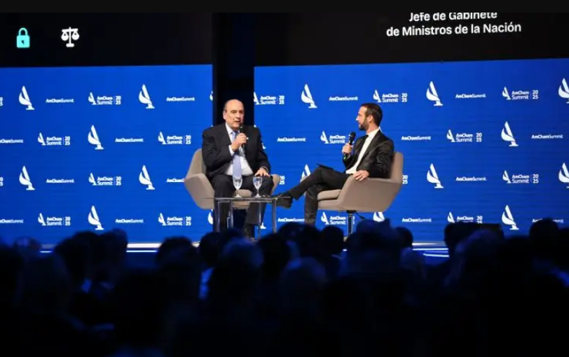 Durante un evento organizado por la Cámara de Comercio de Estados Unidos en Argentina (AmCham), el jefe de Gabinete respondió sobre el posible avance de un proyecto en Diputados que impulsa una suba en los haberes jubilatorios. “Sabemos que son las reglas del juego de la democracia y tenemos que convivir con eso, pero cualquier norma que se aparte de los ejes fundamentales de nuestra política va a ser vetada por el Presidente”, afirmó.