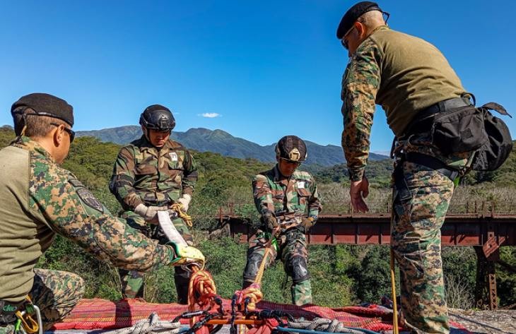 Evalúan a rescatistas en el Viaducto del Saladillo en una capacitación internacional