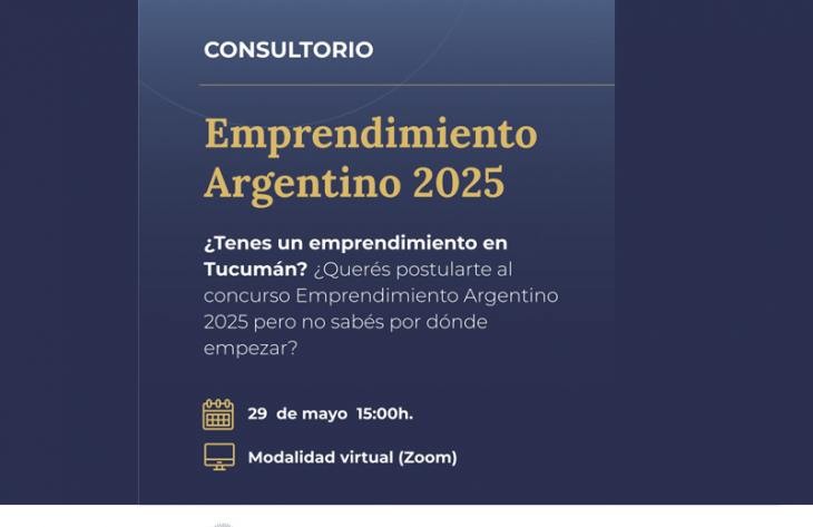 El IDEP Tucumán (Instituto de Desarrollo Productivo), en articulación con la Secretaría de la Pequeña y Mediana Empresa, Emprendedores y Economía del Conocimiento del Ministerio de Economía de la Nación, invita a emprendedores de la provincia a participar del Consultorio virtual sobre el concurso Emprendimiento Argentino 2025.