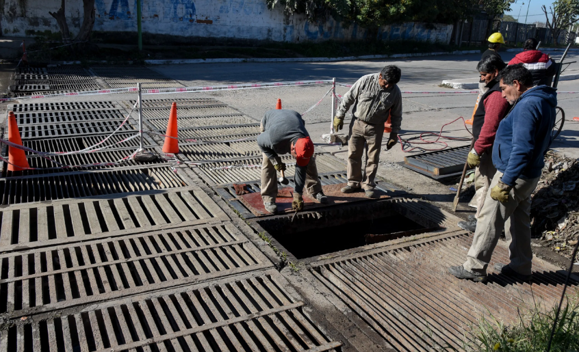 El Municipio está reemplazando las antiguas rejas para optimizar el drenaje del agua de lluvia. Las obras aportarán más seguridad vial a esta transitada zona de la capital.