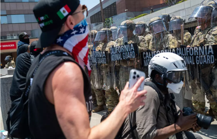 Sus declaraciones tienen lugar luego de que aproximadamente una docena de miembros de la Guardia Nacional, junto con personal del Departamento de Seguridad Nacional, repelieran a un grupo de manifestantes que se congregaron frente a un edificio federal en el centro de Los Ángeles , según muestra un video. El enfrentamiento continuó en la calle, frente a las instalaciones.