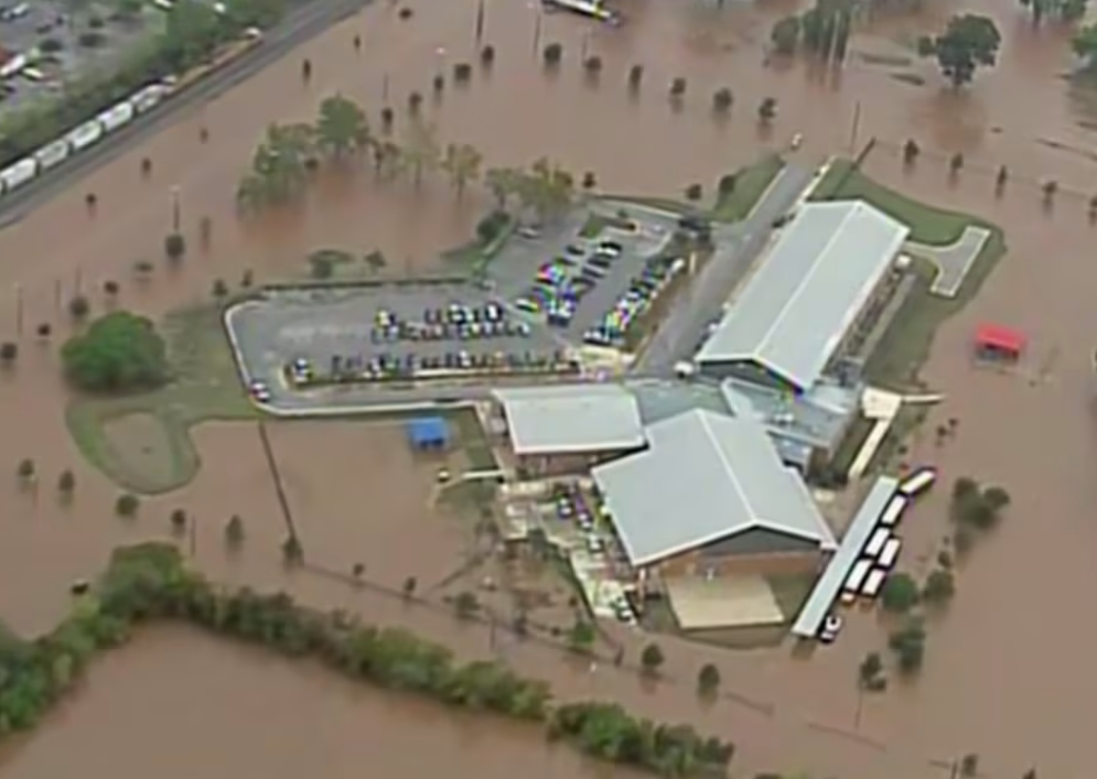 El servicio meteorológico emitió una alerta de inundación para el centro-sur del condado de Kerr, e instó a los residentes a no viajar y a trasladarse a zonas más altas.