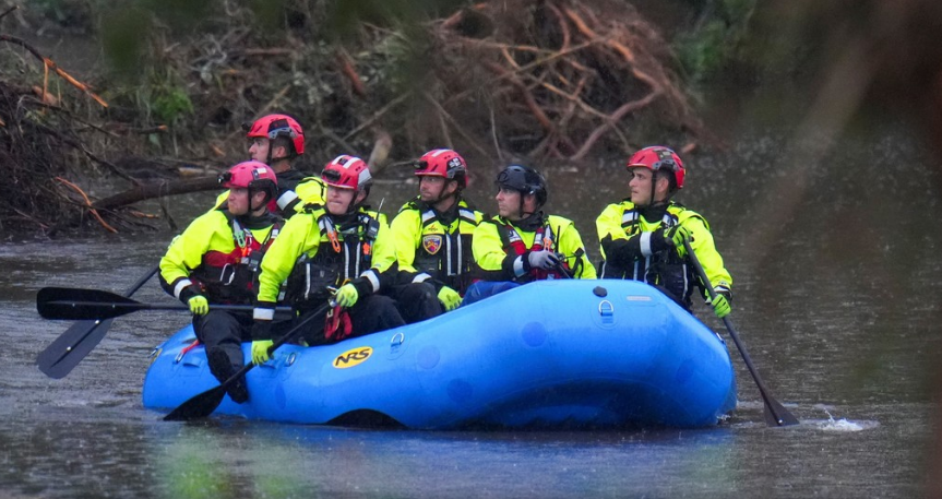 Cerca, cuadrillas cercanas con maquinaria pesada extraían troncos de árboles y ramas enredadas del agua mientras buscaban en el río. Con cada hora que pasaba, la perspectiva de encontrar más sobrevivientes se volvía aún más sombría.