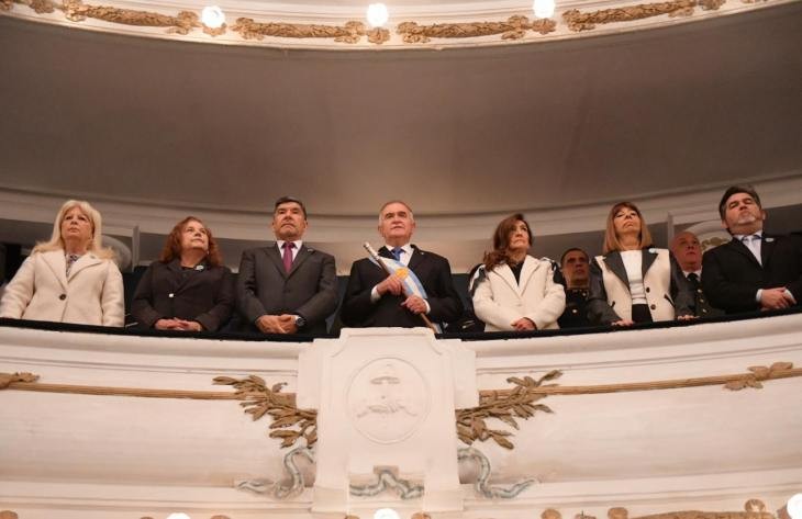 Jaldo llegó acompañado por su esposa, Ana María Grillo; el vicegobernador, Miguel Acevedo con su esposa, Miryan Segura; el ministro de Salud, Luis Medina Ruiz; el ministro de Gobierno y Justicia, Regino Amado; el secretario general de la Gobernación, Federico Nazur; la ministra de Educación, Susana Montaldo; su par de Obras Públicas, Marcelo Nazur; la Fiscal de Estado, Gilda Pedicone; y el presidente del Ente Cultural de Tucumán, Humberto Salazar. Además acompañaron los legisladores Walter Herrera, Walter Berarducci, Javier Noguera, Rolando Alfaro, Hugo Ledesma, Gerónimo Vargas Aignasse y Carlos Gallía.