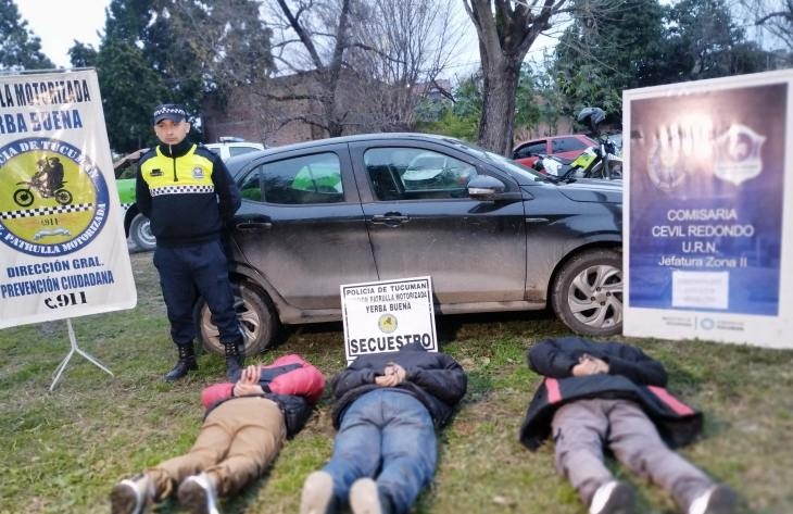 Gracias al trabajo conjunto entre efectivos de la División Patrulla Motorizada Yerba Buena y personal de la Comisaría San José pudieron aprehender a los agresores momentos después de cometer el hecho de amenazas.