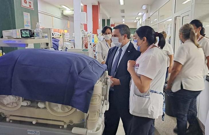 La subdirectora médica Gloria Ferreyra, detalló que el funcionario visitó al bebé y se interiorizó sobre su evolución. “Estuvimos en la Terapia Intensiva ya que el Ministro de Salud, doctor Luis Medina Ruiz, vino a conocer el progreso del pequeño nacido con 26 semanas pesando 840 gramos y se encuentra con asistencia respiratoria mecánica estable, a pesar de todas las complicaciones propias de un niño tan prematuro”.