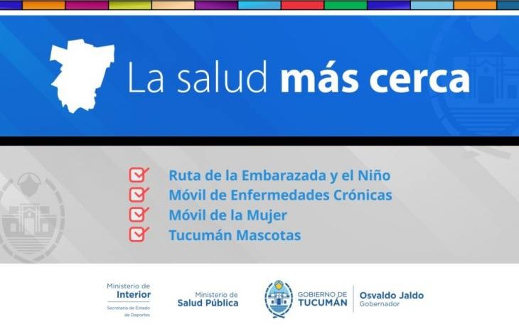 Bajo los lineamientos del gobernador Osvaldo Jaldo y con el objetivo de estar cerca de la comunidad, las unidades móviles de la Mujer, de la Embarazada, de Enfermedades Crónicas, de La Salud va a la Escuela y el Operativo Tucumán Mascotas del Ministerio de Salud Pública a cargo del ministro Luis Medina Ruiz, se ponen al servicio de la población en la Plaza San Miguel ubicada en la intersección de calles Cabrera y Charcas del 15 al 19 de septiembre de 9 a 13 horas.