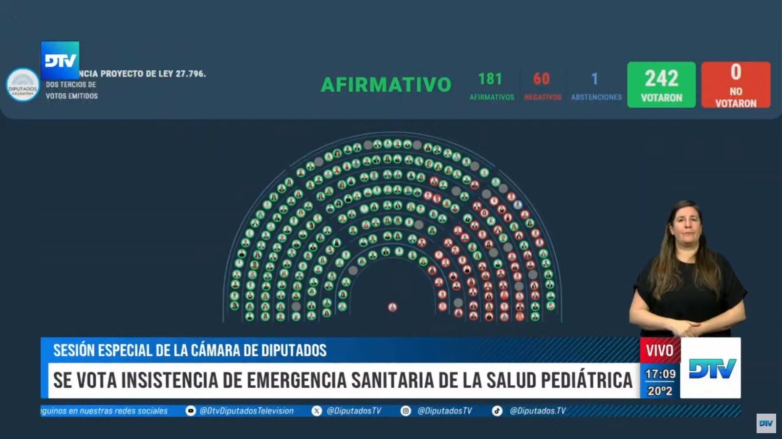 La primera votación fue sobre la Ley de Emergencia del Hospital Garrahan. El veto de Milei fue rechazado por 181 votos afirmativos contra 60 negativos, consiguiendo así la mayoría calificada.