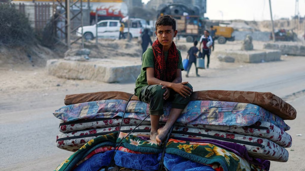 El flujo hacia el sur de la Franja es constante: coches pequeños, camiones, carros tirados por animales y personas caminando, todos avanzando por la carretera costera hacia las zonas centrales y del sur. Sin embargo, esta huida no ofrece la seguridad que buscan las familias que escapan. La parte central del territorio gazatí y la zona costera de Al Mawasi, designadas por Israel como “zonas seguras”, representan apenas entre un 12% y un 13% de la superficie de Gaza, que es de un total de 365 kilómetros cuadrados, y ya están desbordadas de desplazados. Entre 800.000 y un millón de personas estarían ya viviendo en Al Mawasi en pésimas condiciones de higiene y seguridad, según fuentes locales y de la ONU. Esto obliga a los recién llegados a tomar decisiones imposibles sobre dónde establecer hogares temporales.