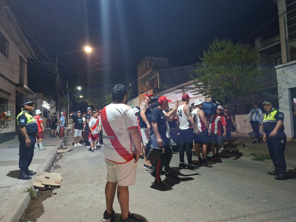 “También tenemos varios cortes en la zona norte del estadio y en estos momentos estamos realizando un control bien detallado y profundo del ingreso de la hinchada de River: Contamos con un primer filtro en lo que es el pasaje Atlético y Perú, donde se estacionaron los micros, descendió la hinchada visitante y después se realiza la requisa, primero por Infantería luego por personal desplegado en las inmediaciones del club y finalmente, por efectivos que están en el ingreso que tiene tribuna segura”, detalló Luna.