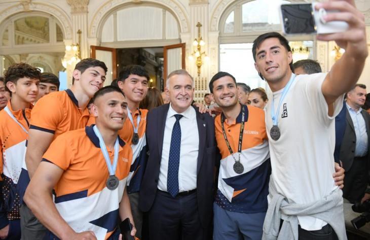 “Es una alegría que hoy nos puedan visitar en la casa de todos los tucumanos. Sentimos un gran orgullo, más que como gobernador, como tucumano”, afirmó. Jaldo agradeció a quienes colaboraron para que los atletas pudieran participar en Santa Fe y destacó el trabajo del secretario de Deportes y de los funcionarios presentes.