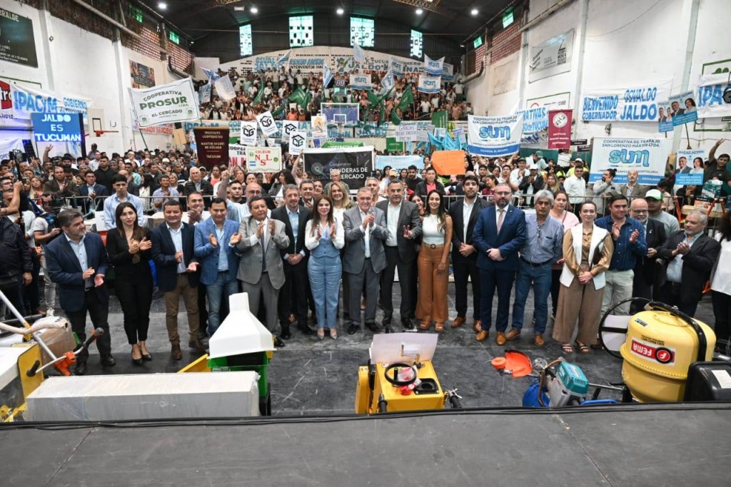En el Club Avellaneda Central, el Instituto Provincial de Acción Cooperativa y Mutual (Ipacym) celebró el acto “La Economía Social Primero”, donde el gobernador, Osvaldo Jaldo, entregó herramientas y maquinarias a cooperativas y mutuales por un monto total de inversión de $300.946.928.00.