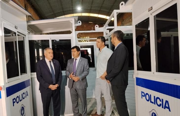 El gobernador, Osvaldo Jaldo, recorrió junto al ministro de Seguridad, Eugenio Agüero Gamboa, la empresa donde se fabrican las cabinas de seguridad que se vienen instalando en los distintos barrios de la Capital para acercar el personal policial a los ciudadanos.