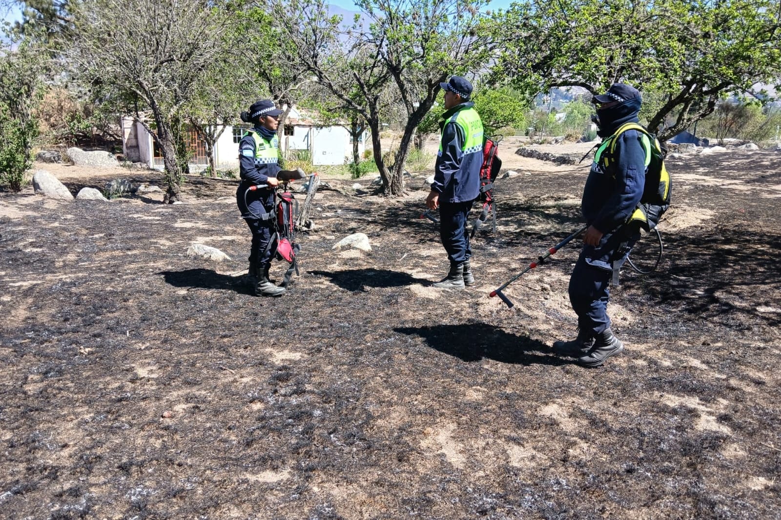 Alertados por los vecinos, los uniformados se desplazaron de inmediato al lugar y trabajaron de manera coordinada con personal de Bomberos Voluntarios de esa jurisdicción, logrando sofocar el fuego antes de que causara daños en los domicilios cercanos.